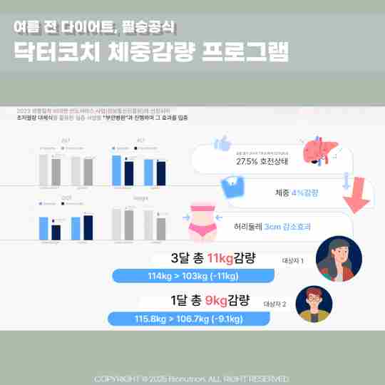 특히 허리둘레가 평균 3cm 감소하며 간 건강 지표도 크게 좋아졌습니다.