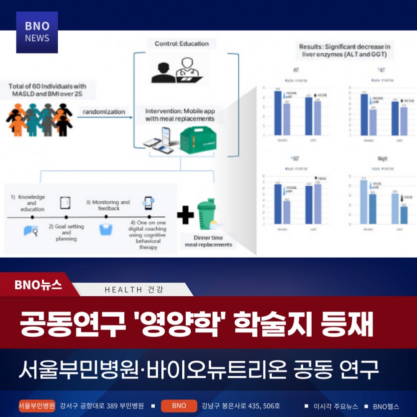 인더뉴스 김용운 기자ㅣ서울부민병원과 바이오뉴트리온의 공동 연구 결과인 '고단백 식이대체제를 활용한