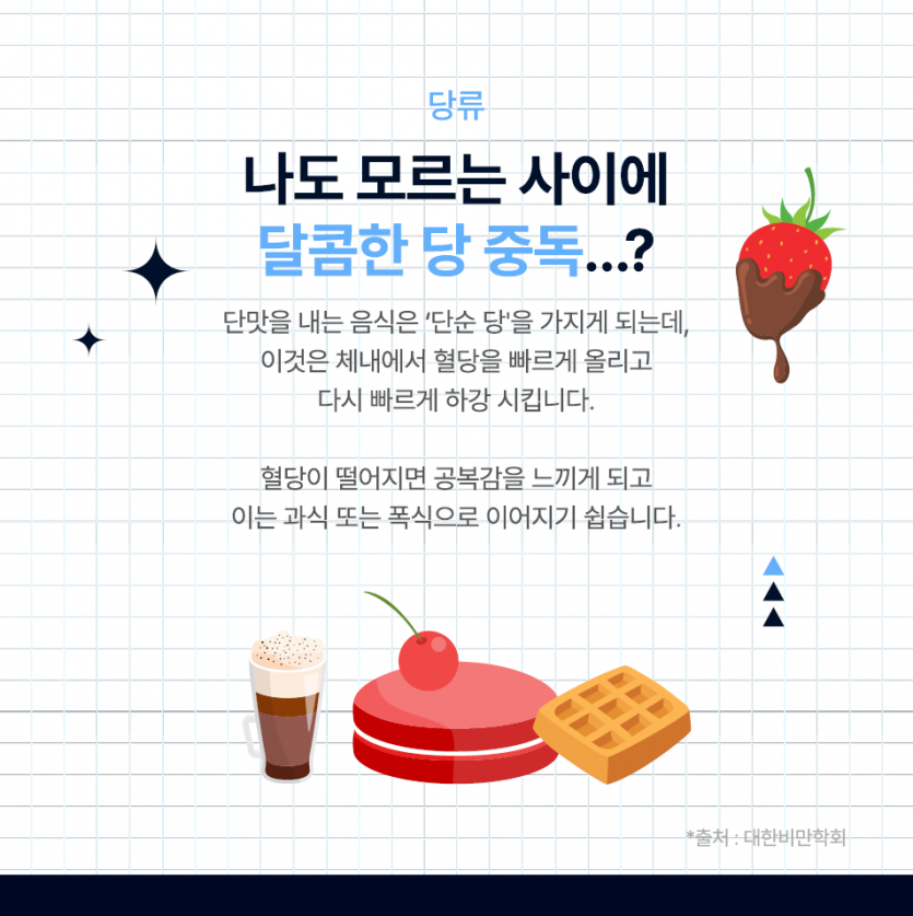 당류는 혈당을 급격히 올렸다가 빠르게 하락시켜 더 많은 음식을 찾게 만들어요.